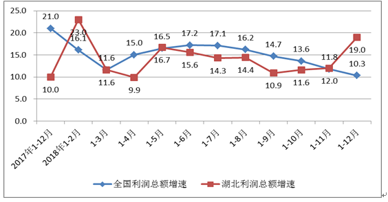 图2 全国和湖北各月累计利润总额同比增速